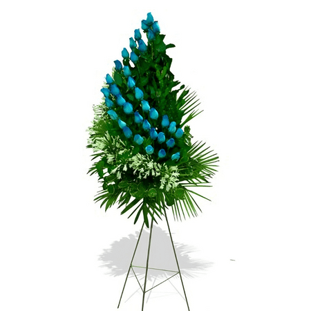 Arreglo en pedestal de rosas turquesas, elaborado con rosas pintadas y adonadas con fino follaje de vivero. Importante: Pedido con 1 semana de anticipación.