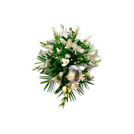 Lágrima de piso de Rosas blancas, elaborada con gladiolos y flores del campo, adornadas con fino follaje de vivero.