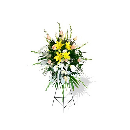 Lágrima en pedestal de Rosas y Liliums. Lágrima adornadas con flores del campo y fino follaje de vivero. Medida aprox. 1.60 mt de alto.